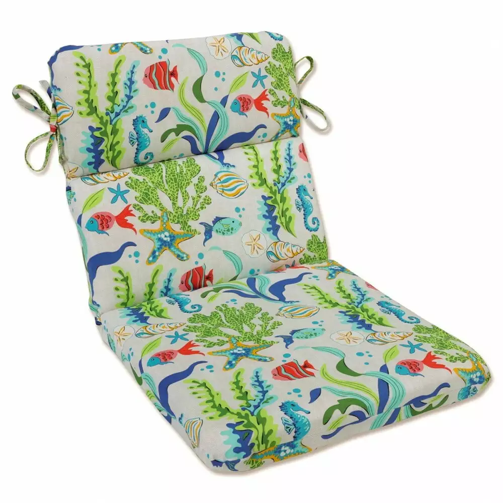 Pillow Perfect Outdoor Coral Bay Blue Rounded Corners Chair Cushion - 40.5 X 21 X 3 - 40.5 X 21 X 3