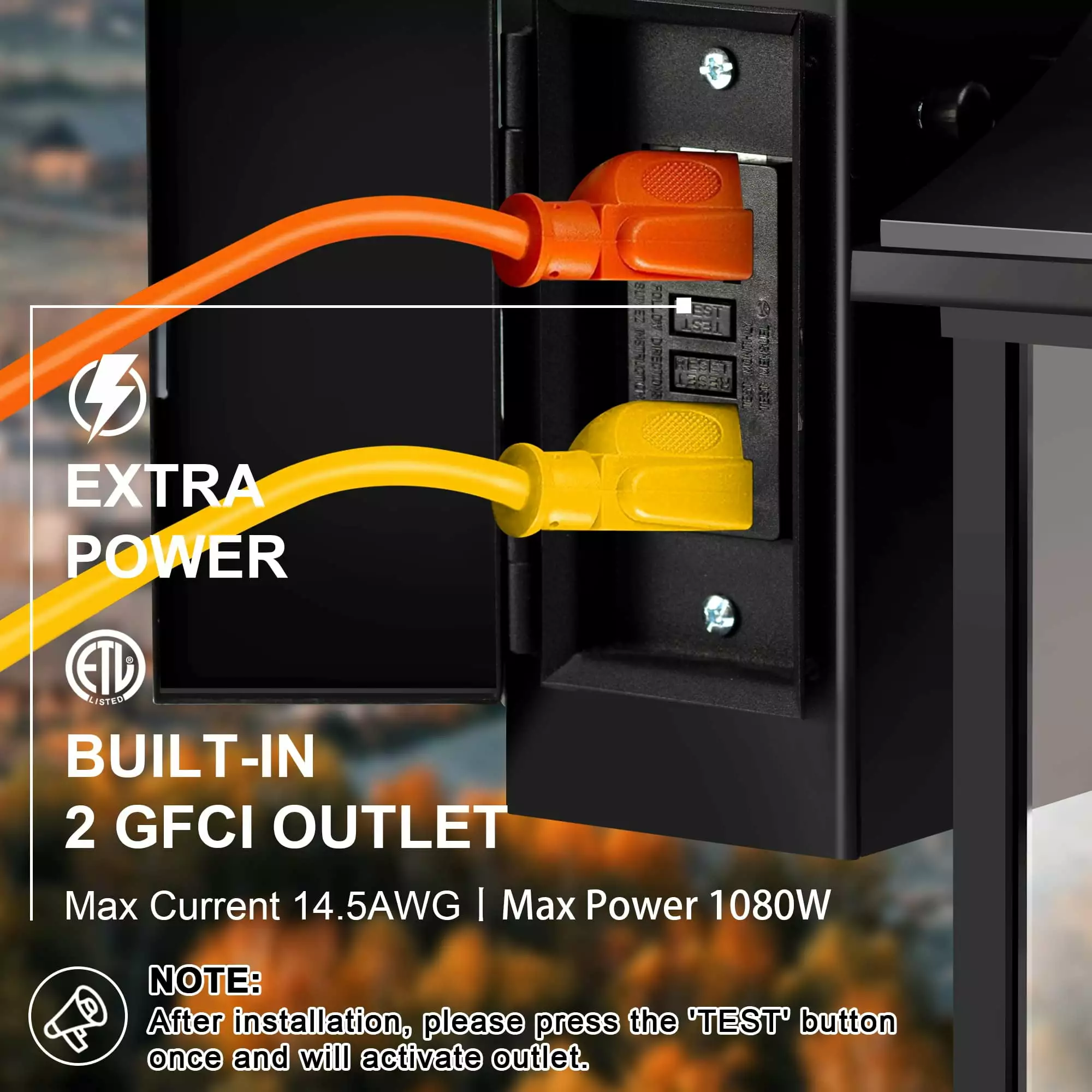 The front porch light has 2 GFCI outlets (Ground Fault Circuit Interrupter) for two and three prong plugs for easy access to power outdoors and extra protection against power surges. short circuits. The outdoor light fixture is made of high-quality aluminum metal and upgraded tempered glass shade. which can effectively withstand any weather changes from sun to snow. rain to ice. This outdoor light is a perfect match for most outdoor situations. such as patios. garages. balconies. decks. and more. Our outdoor wall sconces do not include bulbs.