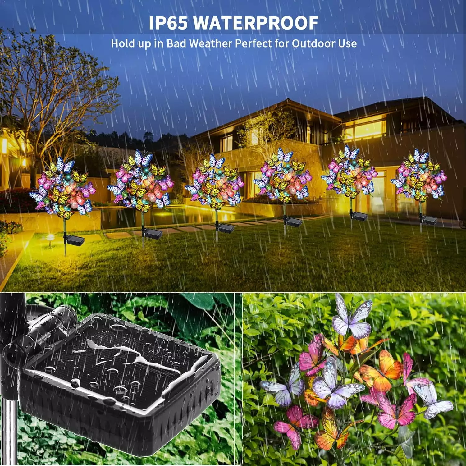 WEATHER RESISTANCE & PERFECT OUTDOOR GARDEN YARD DECORATIONS: IP65 waterproof Solar Landscape Lights ensure long lasting performance under most weather conditions. Do not need to worry about them in bad weather. perfect for outdoor decor. You can install them anywhere you like and enjoy the butterfly lights sparkling in Garden. Yard. Patio. Lawn. Front Yard. Backyard. Courtyard. Flowerbed. Greenhouse and large Flowerpots on Balcony.