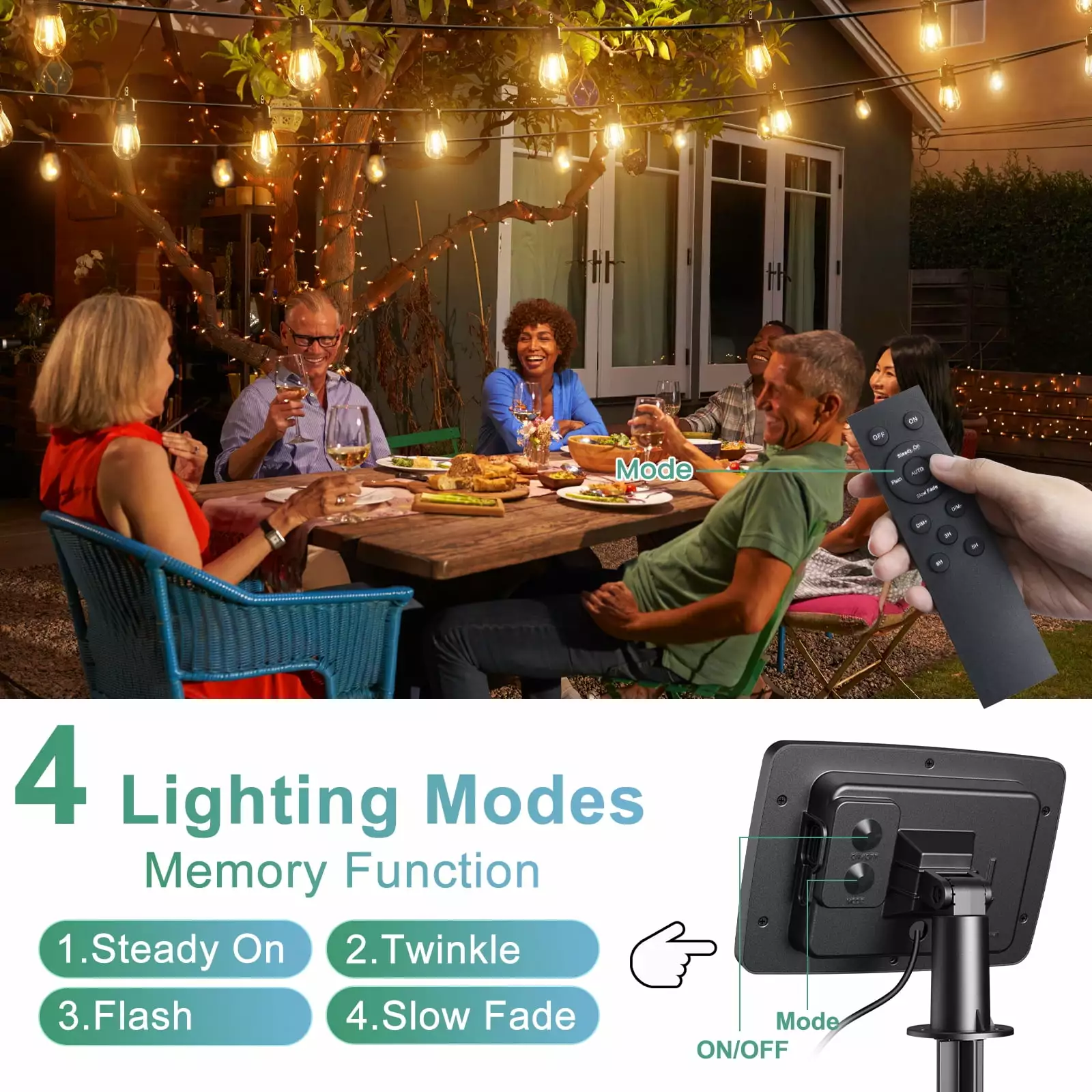 - [Remote control switch control-Remote Control Multi-function. Model]:-One remote control has 4 functions. 3 timing modes. and four levels of brightness integrated into one remote control; 4 modes (steady on. slow flashing. fast flashing. breathing gradient). 3 timing modes (3H. 5H. 8H). four levels of brightness adjustment (25%. 50%. 75%. 100%). switch. automatic mode (automatically turns on when dark and turns off automatically when dawn) to meet your different scenes and times . personalized choice of atmosphere.
