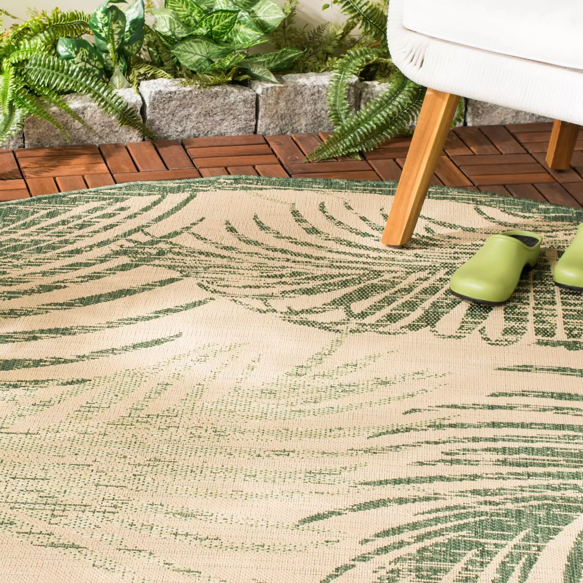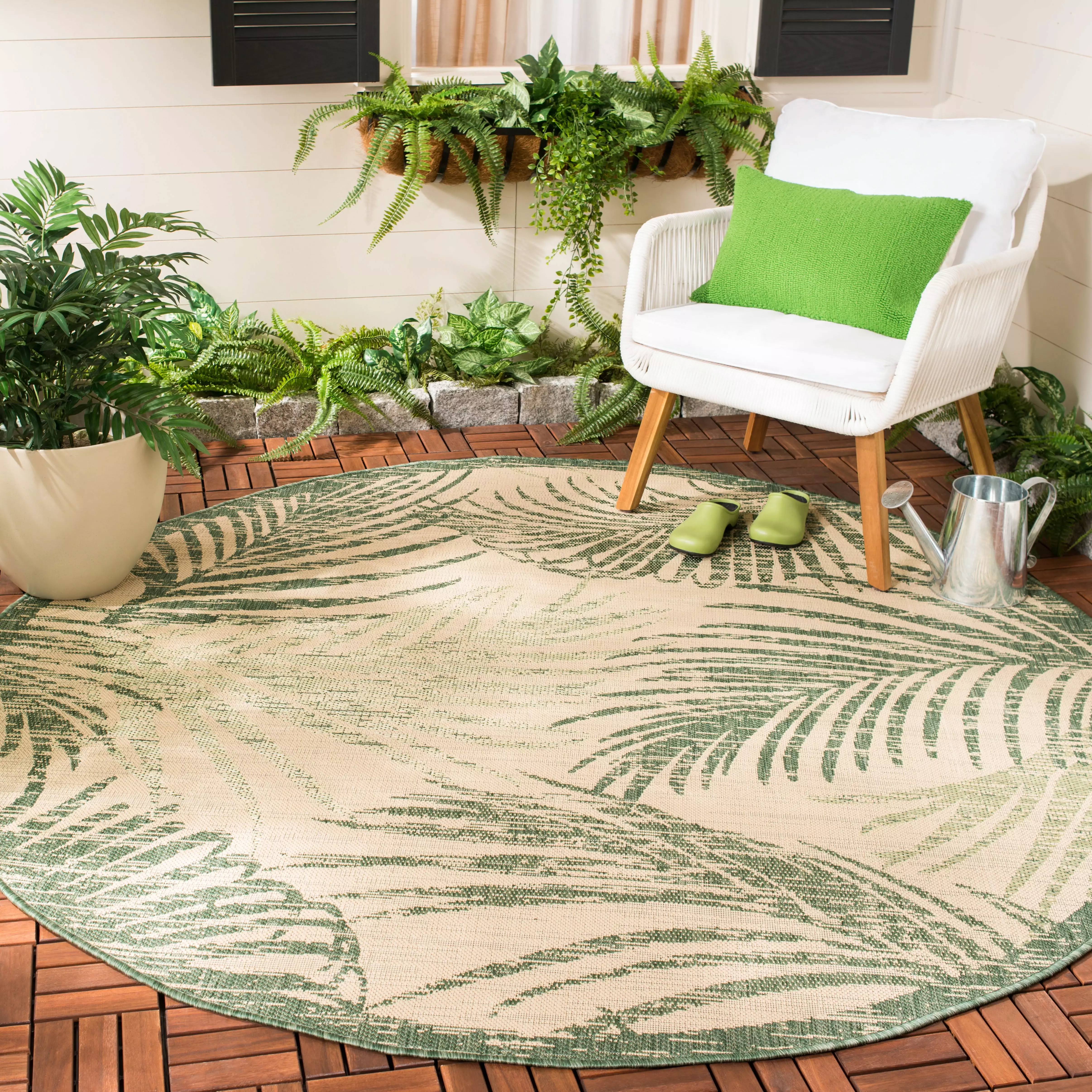 SAFAVIEH Courtyard Padic Botanical Indoor/Outdoor Area Rug. Beige/Green. 6’7 x 6’7 Round