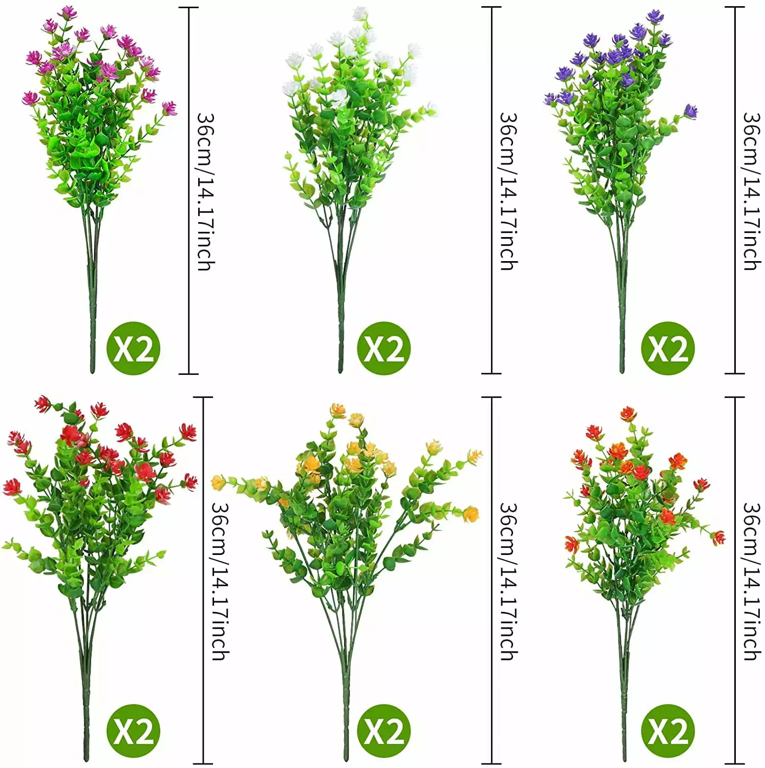 Package List: 12 Bundles of Mélange Artificial Flowers. Each color has 2 bundles. a total of 6 colors. Artificial outdoor flowers are made from high quality UV resistant plastic material. more realistic. vibrant color. hassle free. No need to maintain or care for them. which can be washed by water. Perfect complement to your houseplant or farmhouse greenery decoration.Artificial flowers retain spring all year round. look fresh year after year. perfect for any landscaping project or decor style. Putting in a suitable size container will give you a comfortable visual experience for the corner of your room or party.
