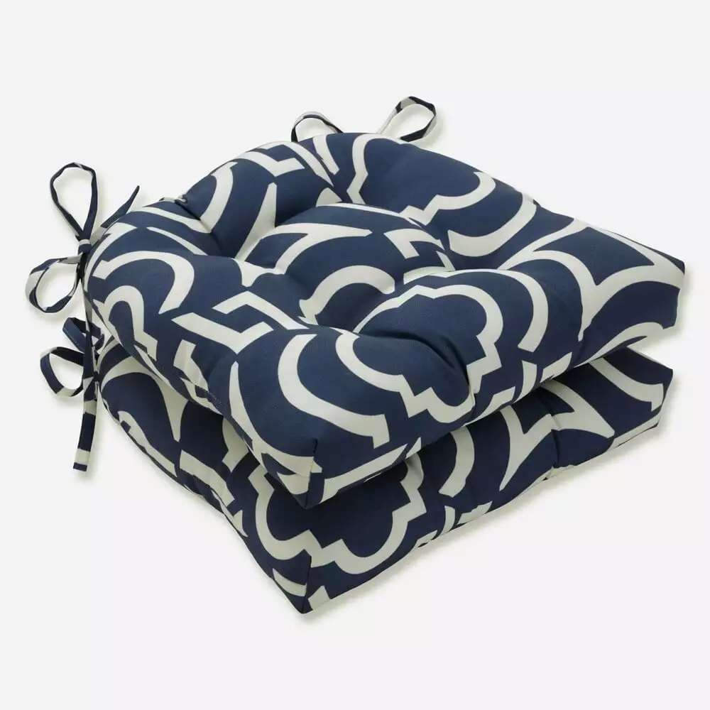 Pillow Perfect Outdoor Carmody Navy Deluxe Tufted Chairpad (Set of 2) - 17 X 17.5 X 4 - 17 X 17.5 X 4