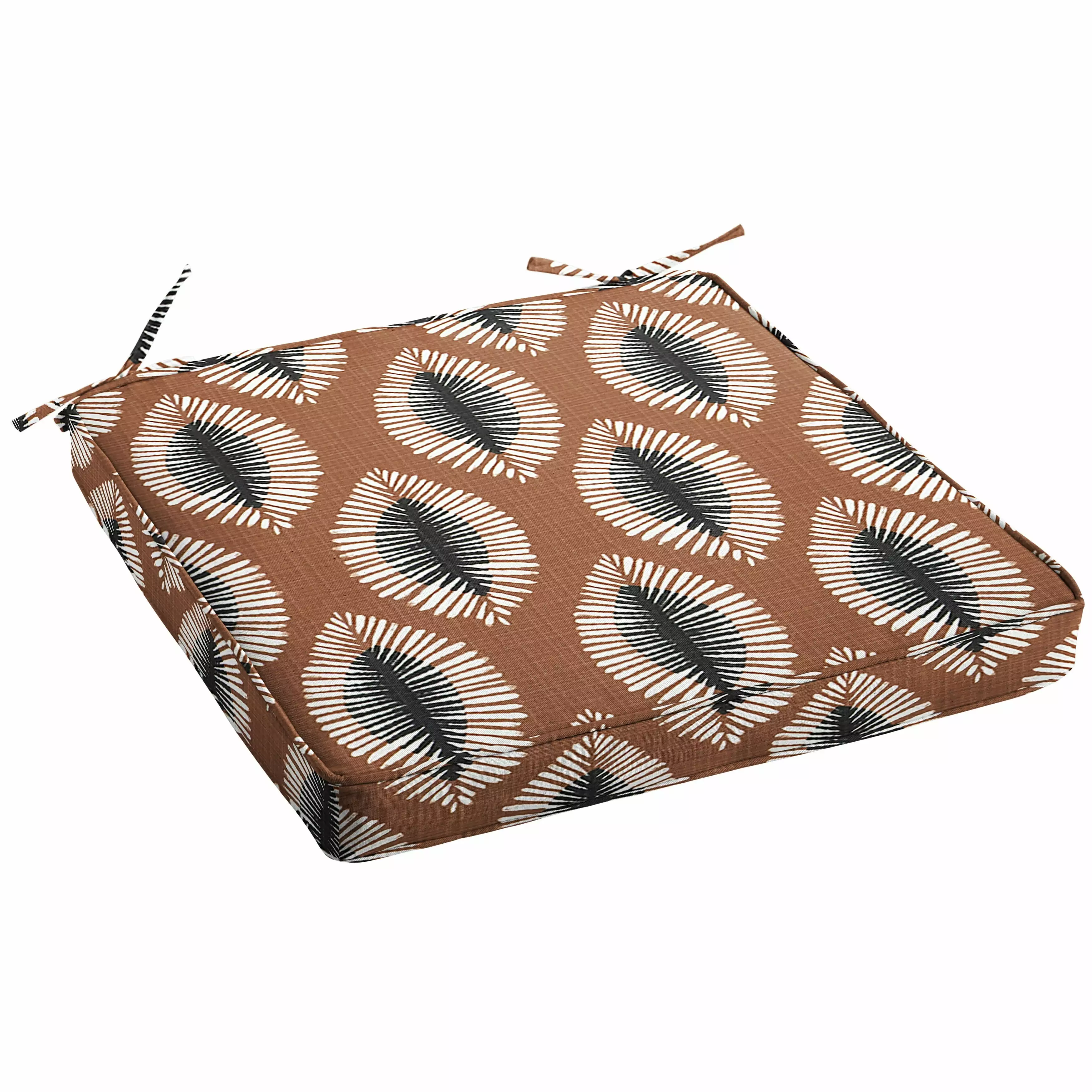 Brighten up your outdoor space and embrace the warmer weather with this beautiful brown color. chair cushion showcasing a durable. boho pattern fabric. Adding just the right combination of function and style. this chair cushion will offer lasting comfort while instantly upgrading your porch or patio! This cushion is crafted out of sun and weather-resistant material to withstand the elements and is made right here in North America!