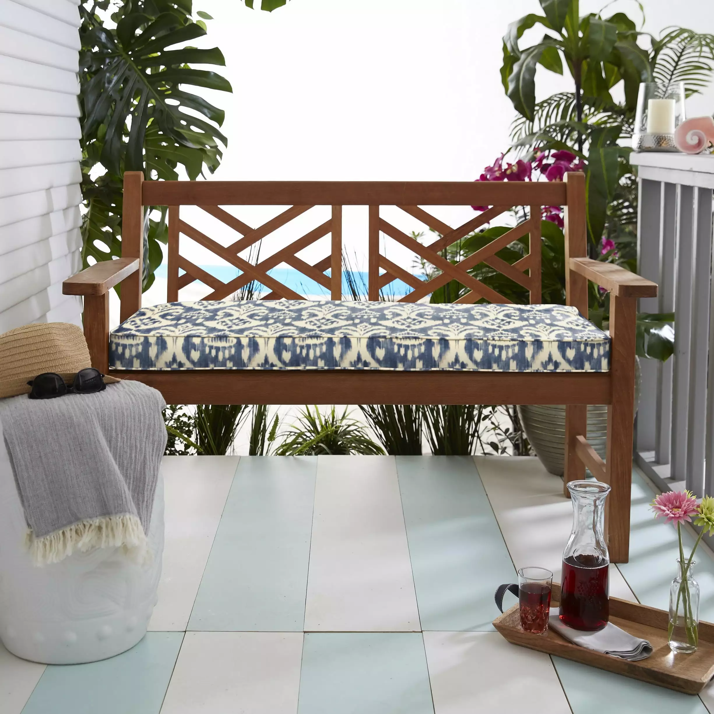 Make your patio more comfortable and stylish. This outdoor bench cushion catches attention with its cool print and earns praise with a comfortable seating experience provided by a pure recycled foam fill. Soft and durable fabric delivers weather- and sun-proof protection against fading and mildew. This outdoor bench cushion easily moves indoors to spice up a casual room.