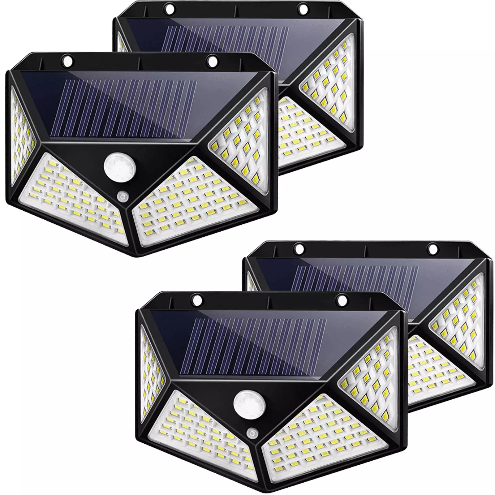 Solar Lights Outdoor 4 Pack. 100LED/3 Modes 270 Lighting Angle Motion Sensor Security Lights. Wireless IP65 Waterproof Wall Lights Solar Powered. Bright for Backyard Garden Fence Patio Front Door