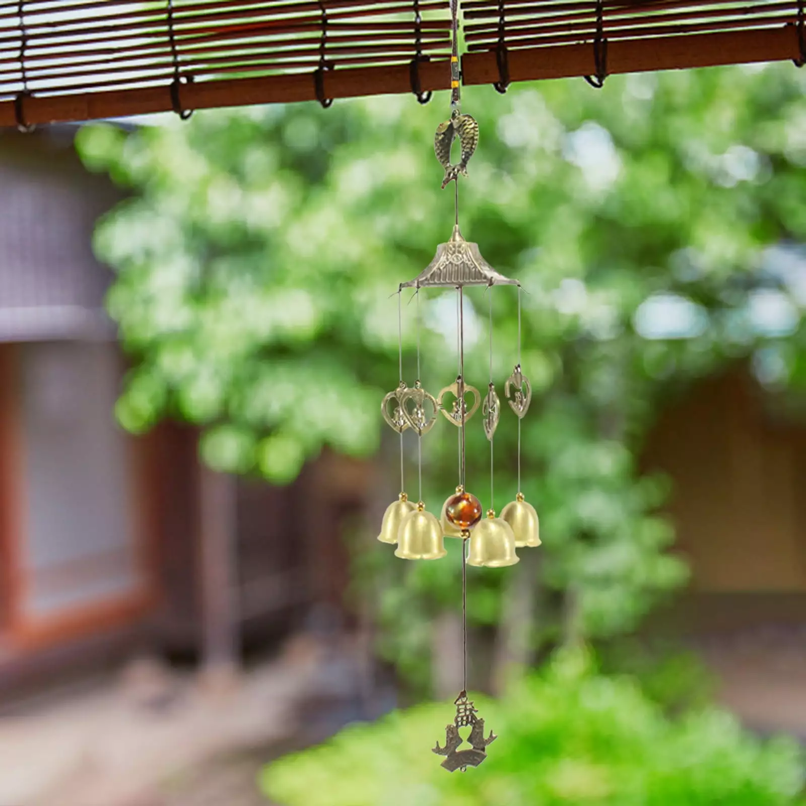 Herrnalise Timelessal Metal Wind Chime Lucky Love Wind Chimes Double Fish Wind Bell 5 Bells Small Wind Chimes Bronze Wind BellHome Garden Ornaments Valentine Day Gifts