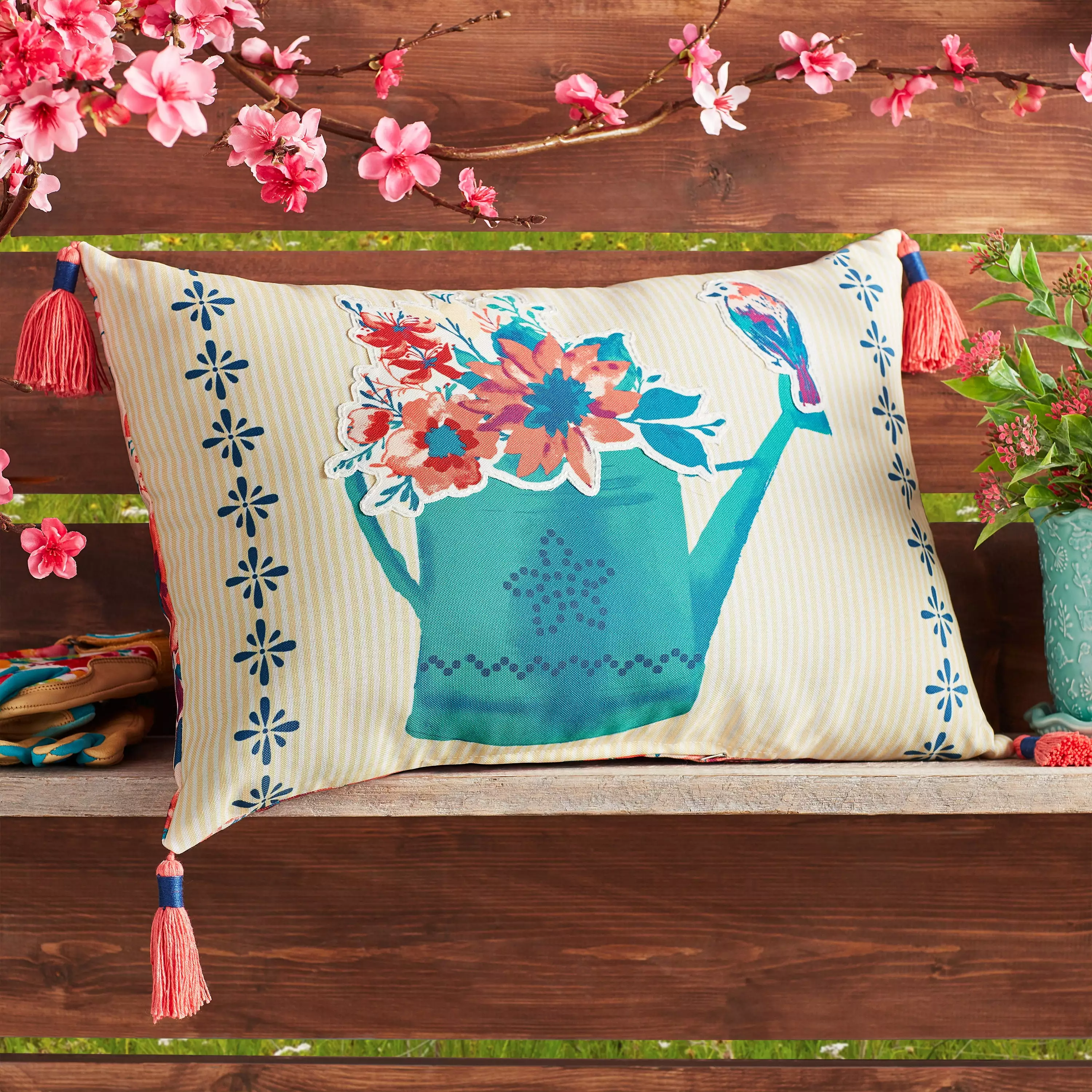 The Pioneer Woman Watering Can Outdoor Rectangle Pillow. Multicolor. 14 x 20