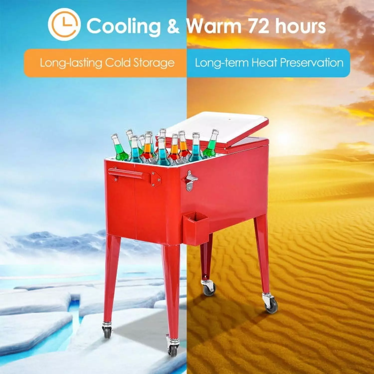 - Recommended Usage: This cooler cart is deal for patio. backyard or outdoor entertainment area. and is perfect for any leisure occasion whether dinner. sports or BBQ party.