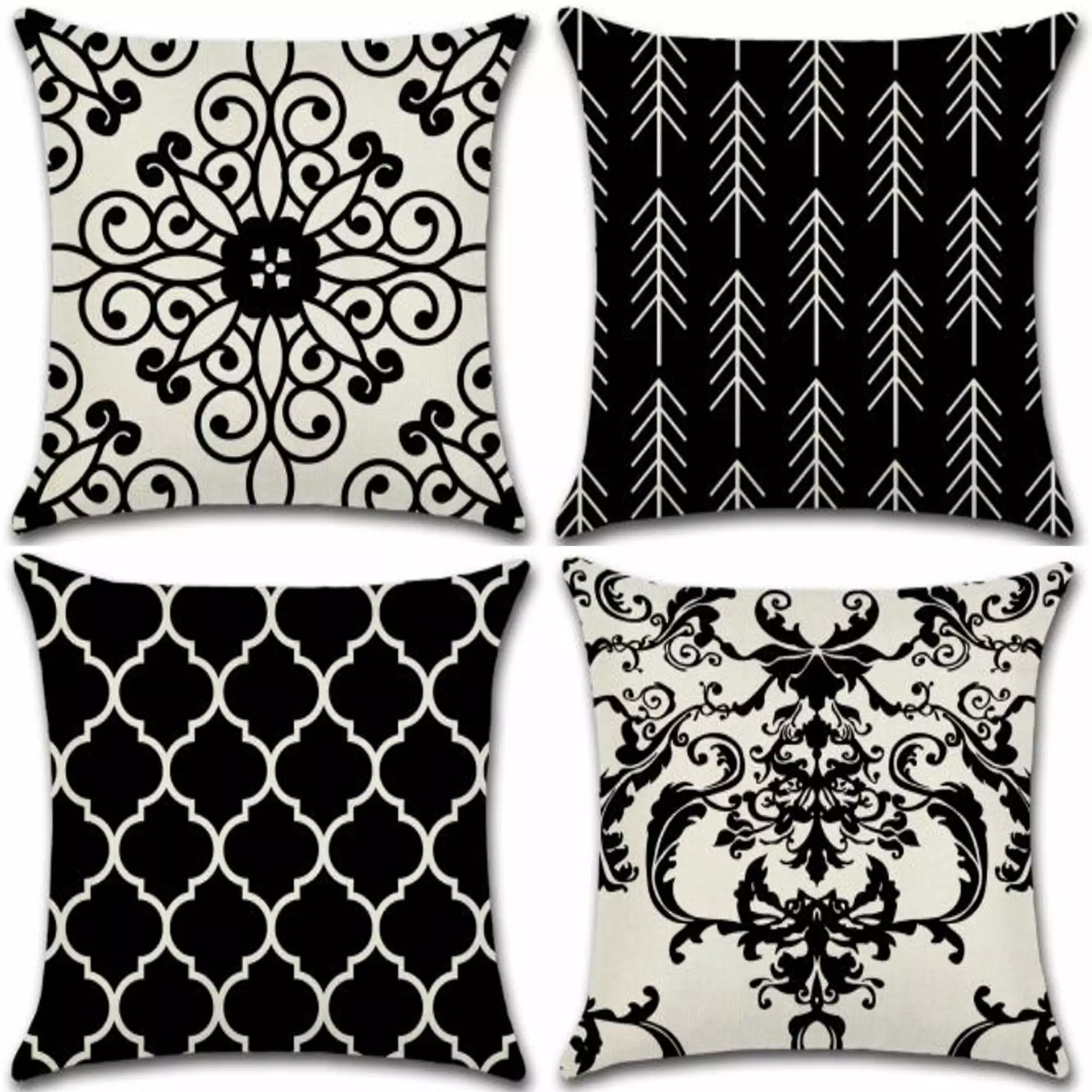 Boho Style Black & White Pattern Design Cotton Linen Fabric Decorative Indoor / Outdoor Throw Pillow Cover Set of Pillow Covers 18x18