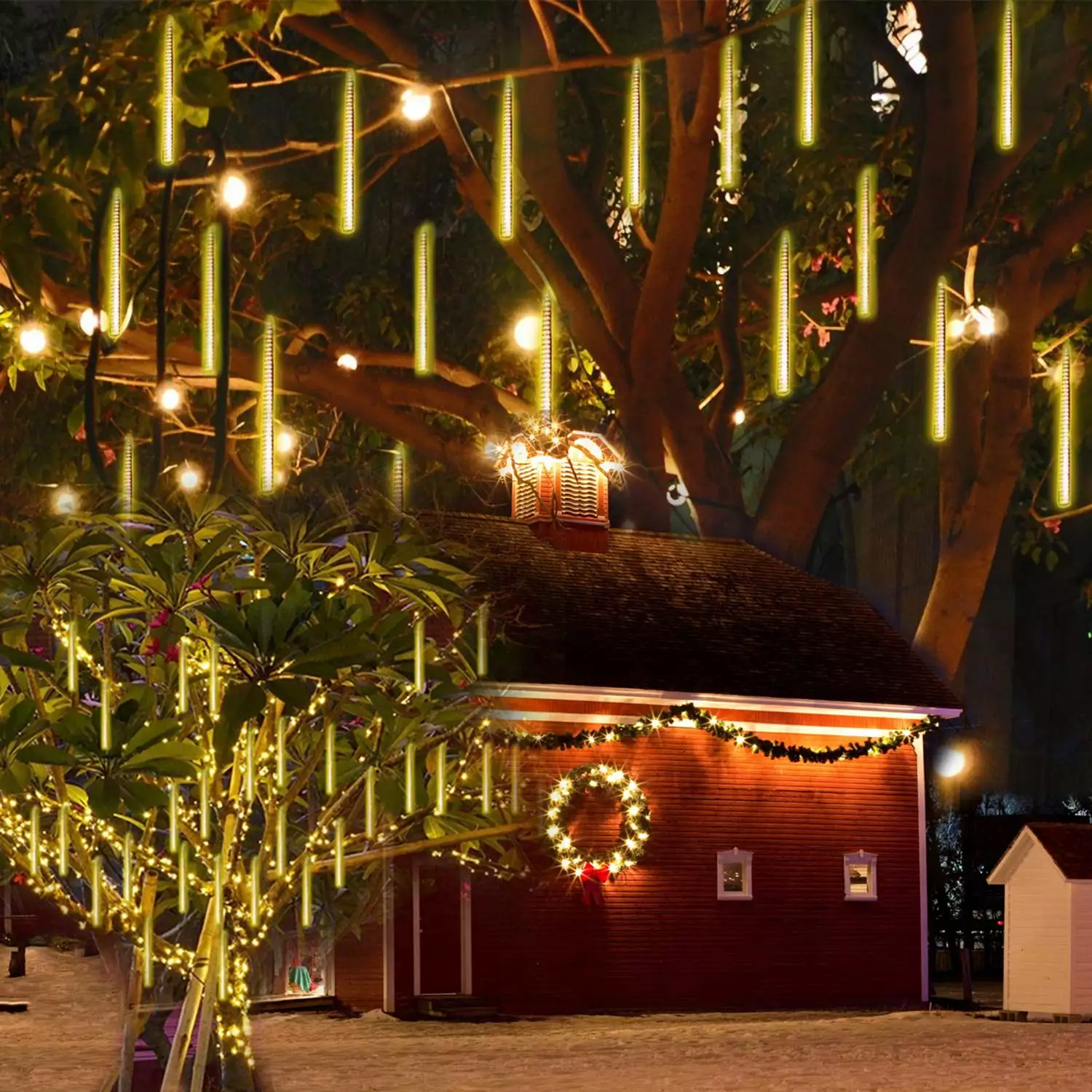 - DECORATION: Meteor Shower Rain Lights are good use to decorate trees along streets. parks. rivers. it also suitable for home garden fence decor. Christmas. New Year. wedding. party. shopping malls and hotels.