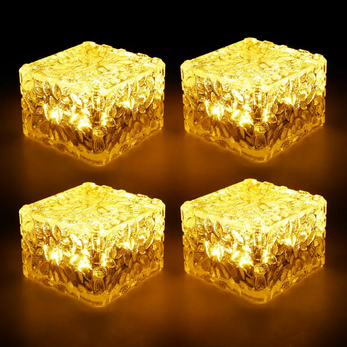 Toorise 4pcs Ice Cube Lights Outdoor LED Solar Brick Light Auto ON/OFF Solar Square Cube Lamp IP68 Waterproof Buried Light for Patio Stairs Yard Garden Pathway