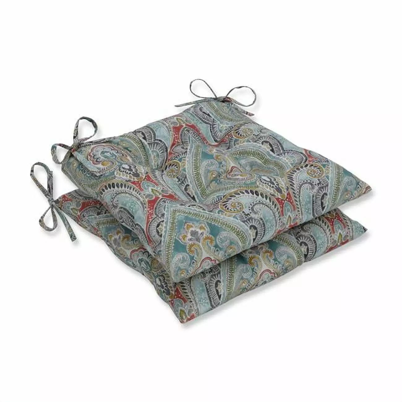 Pillow Perfect 621234 Outdoor & Indoor Pretty Witty Reef Wrought Iron Seat Cushion, Blue - Set of 2