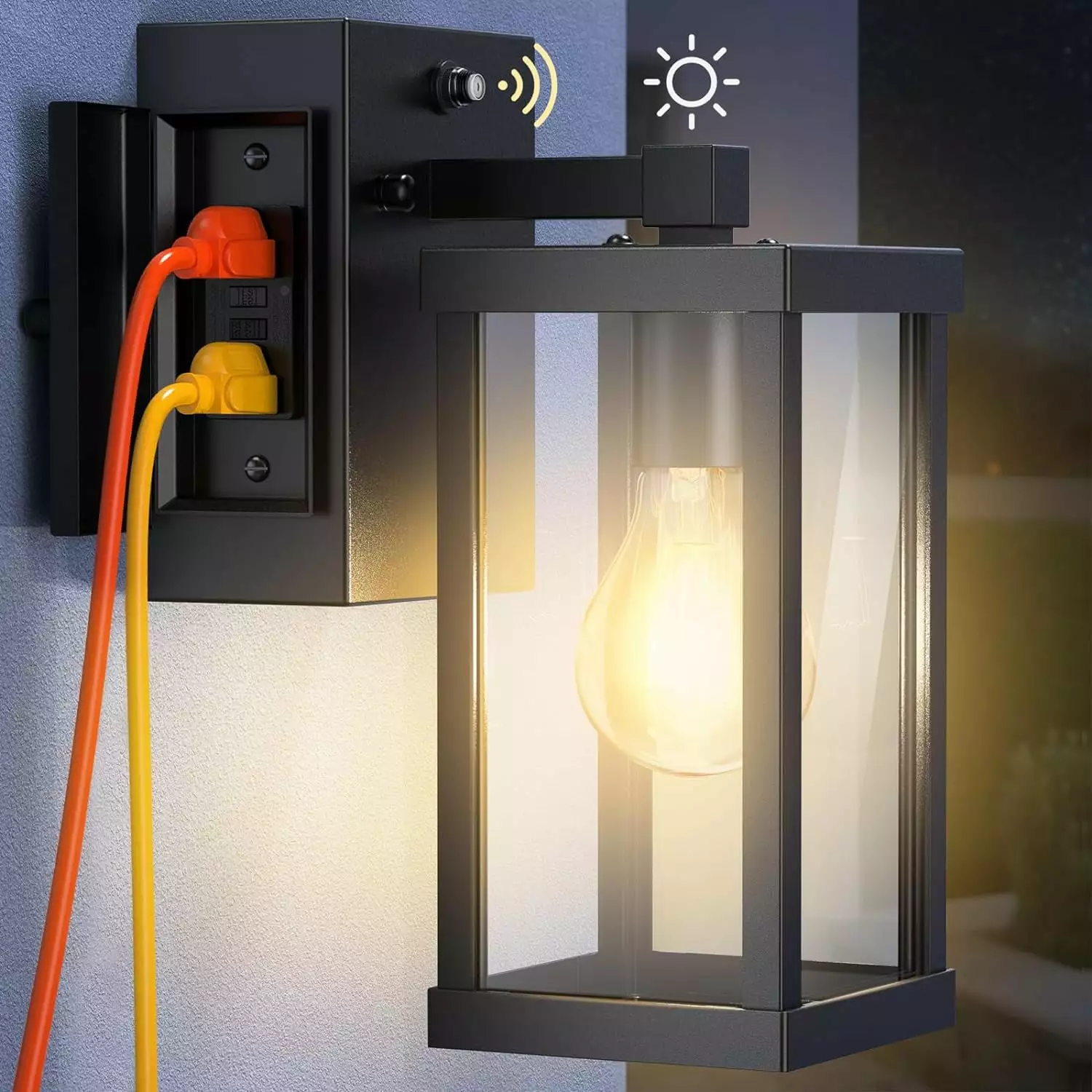 NookNova Outdoor Porch Light with GFCI Outlet Dusk to Dawn Sensor Wall Light Fixture Front Door Exterior Wall Sconce for Houtilize Patio Balcony Garage Doorway