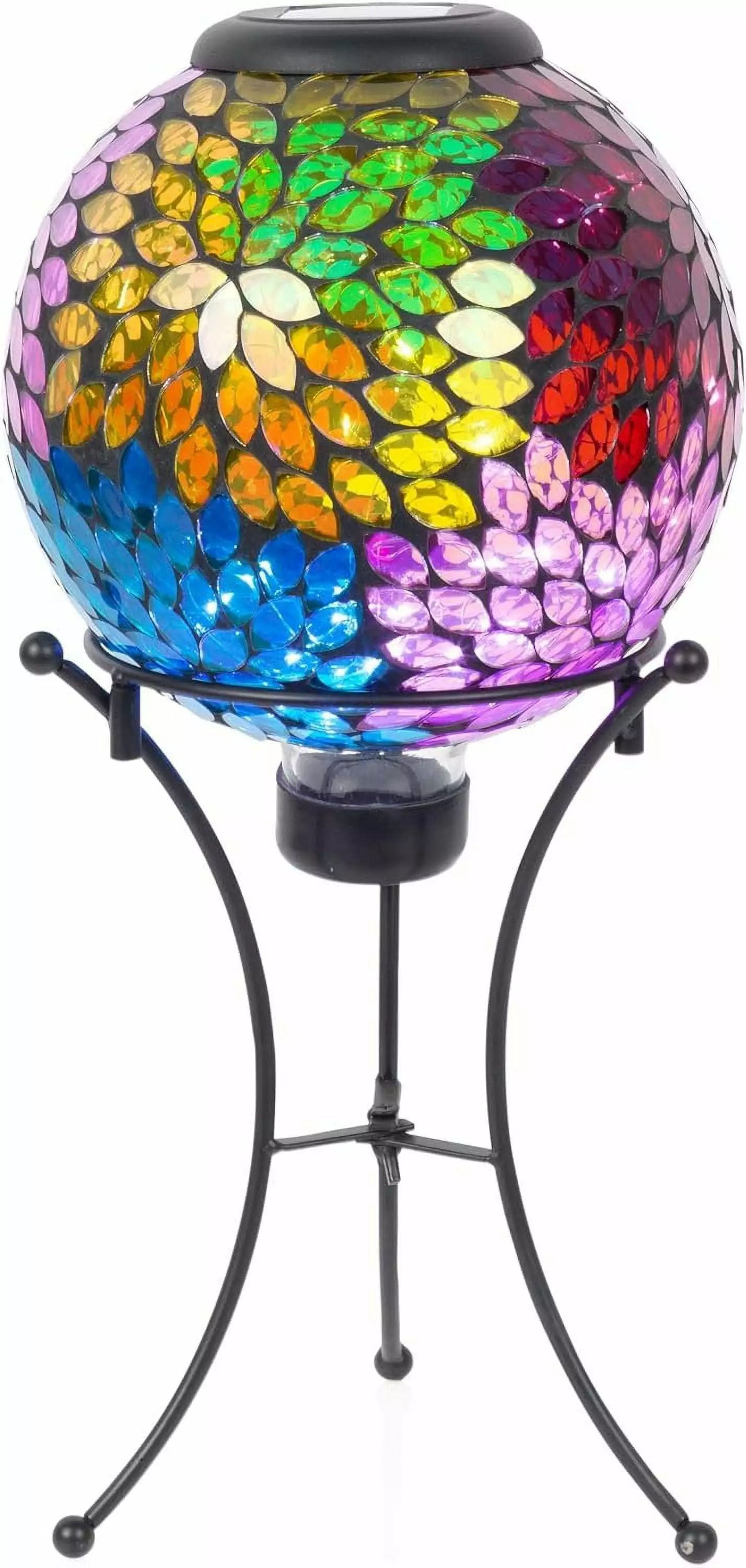 Alpine Corporation HMD173SLR Solar 8 Multi-Color Leaf Metal Stand Gazing Globe