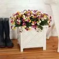 Slip an ordinary flower pot inside this handsome Chippendale planter box for spectacular display! A stunning showcase for flowers or topiaries. this set of 2 outdoor planters is crafted of durable. white polypropylene with traditional Chippendale-style lattice pattern. This square white planter boxes add visual interest to your front porch and increase the curb appeal of your home. Fill them with your favorite greenery like a tree. bush or shrub and place at either side of your front entryway to create a more dramatic entrance that welcomes guests in style. The innovative design of these high-quality planters snap together and snap apart quickly and easily thanks to an innovative design that doesn’t require any tools for assembly. The open bottom allows excess water to properly drain to ensure your plants and flowers in this showstopper don’t become over-saturated with water. These elegant boxes also add to the charm of your backyard landscapes. including porch. farmhouse and more! Thanks to the timeless Chippendale motif crafted of durable polypropylene plastic. Place them along a fence or in place of a traditional hedge to outline the borders of your property. The options are endless with these easy-to-move planters. Snaps together without tools; snaps apart for storage. Set of 2; each 14 3/4"sq. x 13 1/4" high; 11 1/2"sq. x 11" high interior. Each holds up to 22 lbs.