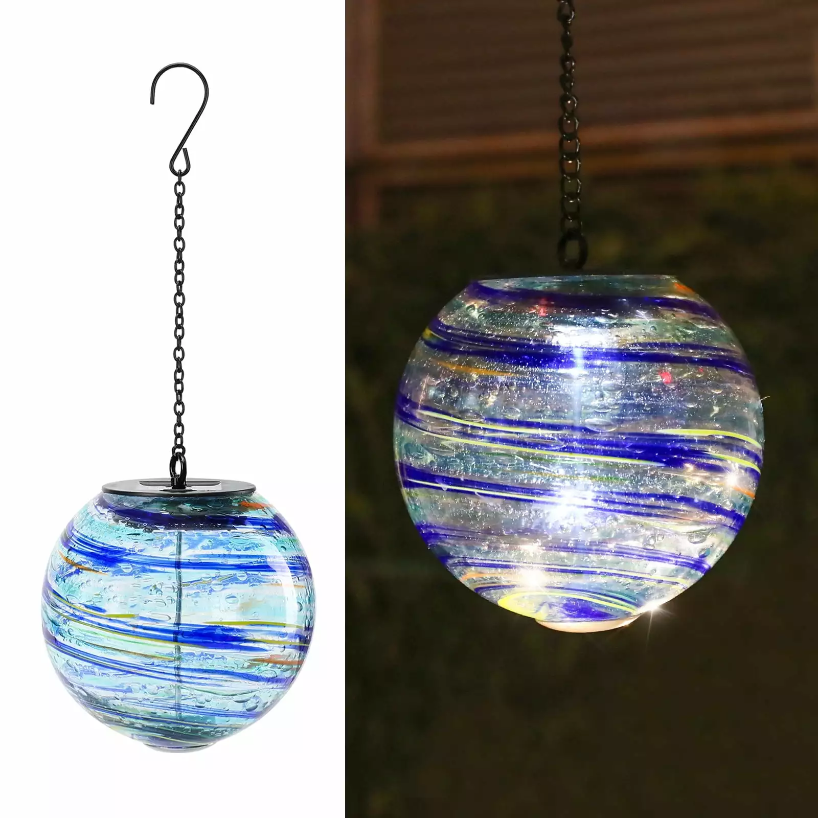 Solar Glass Lanterns Outdoor Hanging - Outdoor Solar Lanterns Gazing Ball Outdoor Hanging Lights Waterproof Garden. Patio. Pathway & Yard Decor Blue