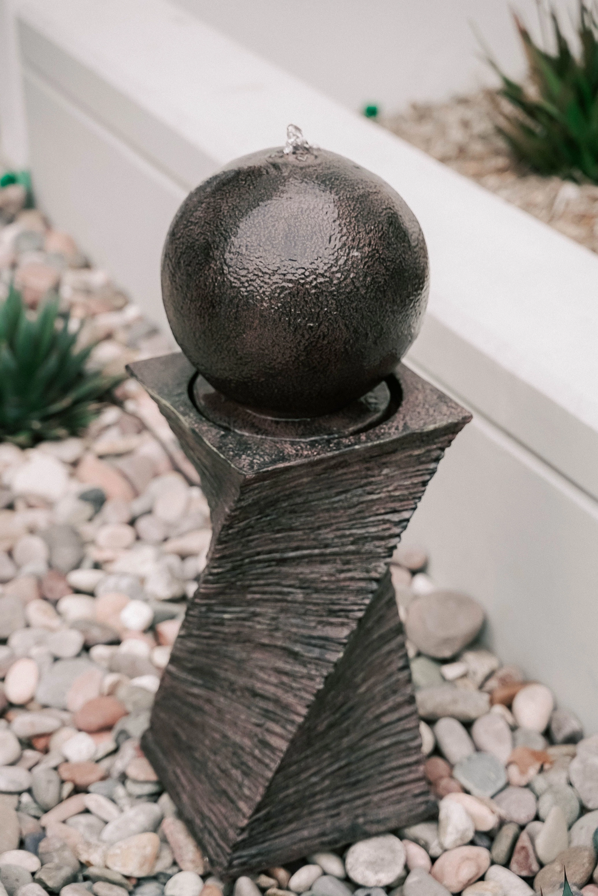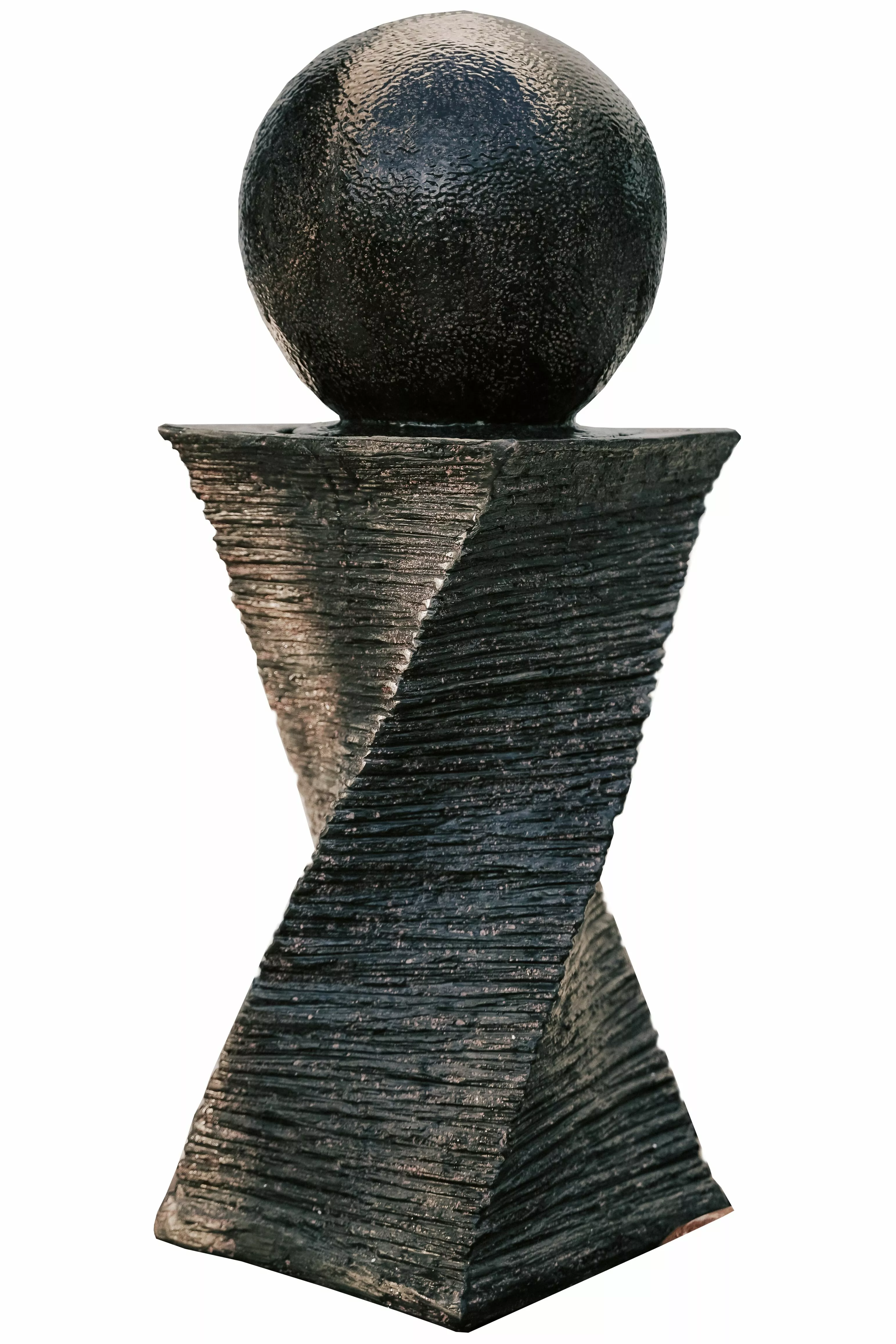 - SWIRL SPHERE OUTDOOR WATERFALL FOUNTAIN: Decorate your lawn and garden. patio. porch. deck or any outdoor space with this glamorous curved swirl waterfall fountain with black finish and create an inviting and enjoyable ambiance