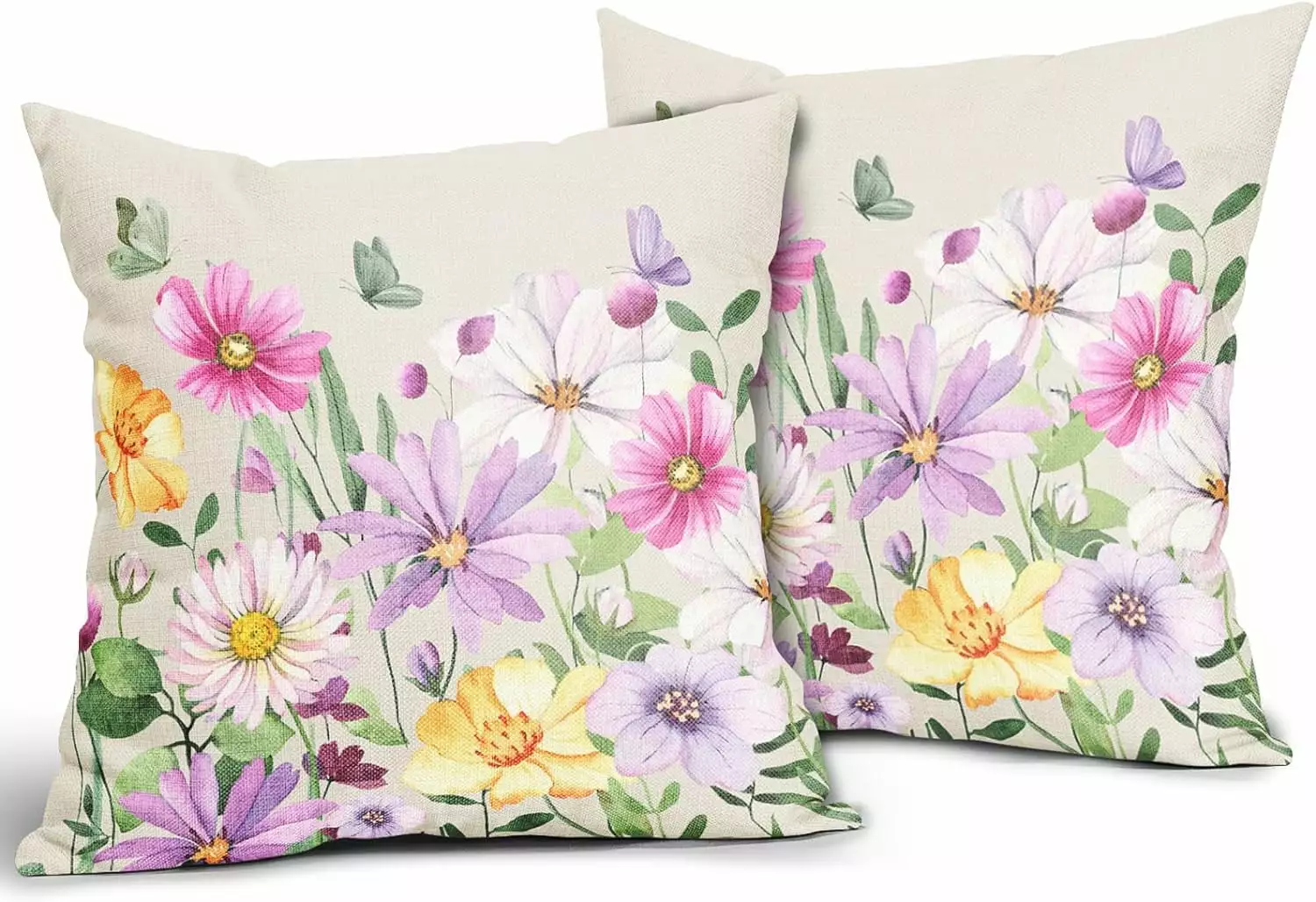 YCHII Spring Floral Pillow Covers 18×18 Set of 2 Pink Purple Green Flower Leaf Plant Print Plant Decorative Throw Pillow Cases Outdoor Summer Farmhoutilize Decor for Sofa Couch Bed