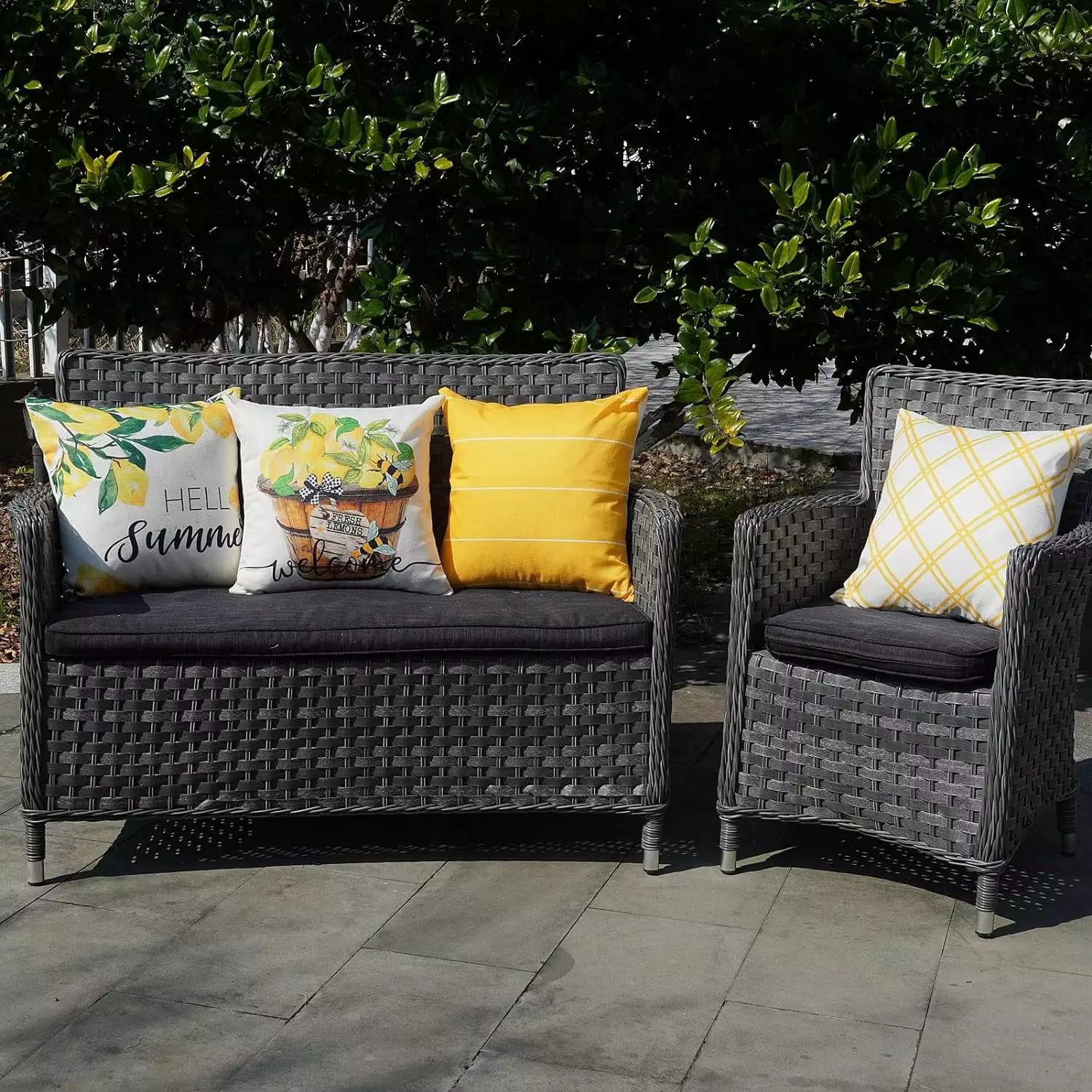 YCHII Summer Throw Pillow Covers 18×18 Set of 4 Lemon Outdoor Yellow Decorations Hello Summer Stripes Waterproof Farmhoutilize Patio Cushion Case for Sofa Couch Home Decor