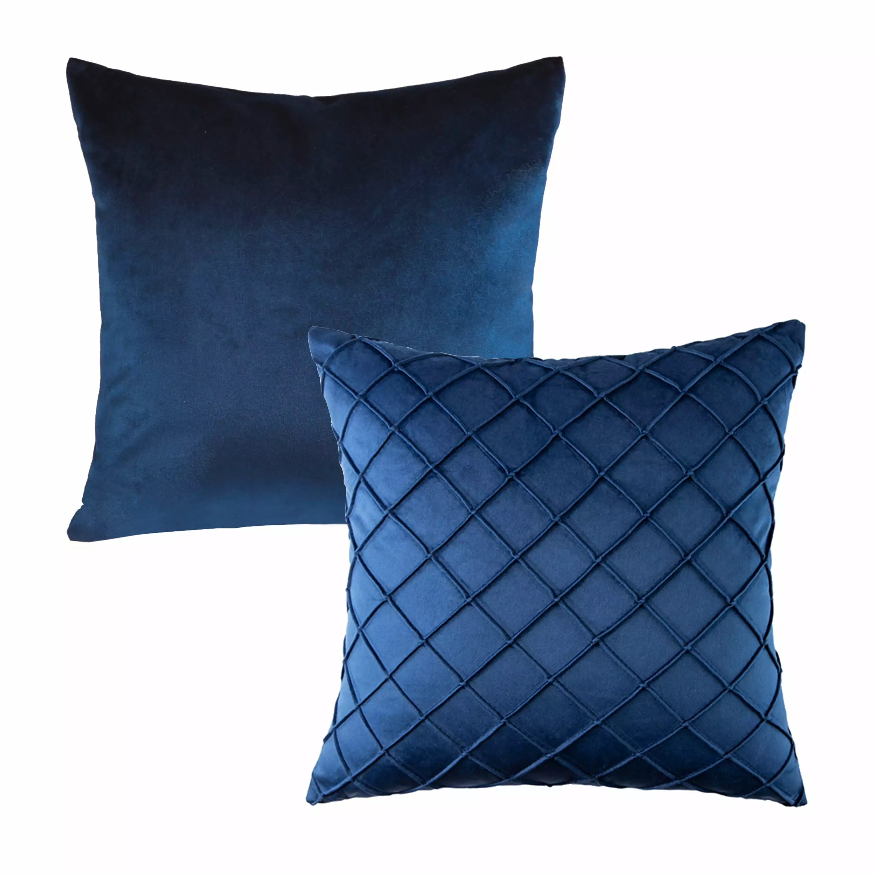 Phantoscope Decorative Throw Pillow Set. Soft Silky Velvet & Soft Pleated Velvet Bundle. for Sofa Couch Bedroom. Navy. 18 x 18