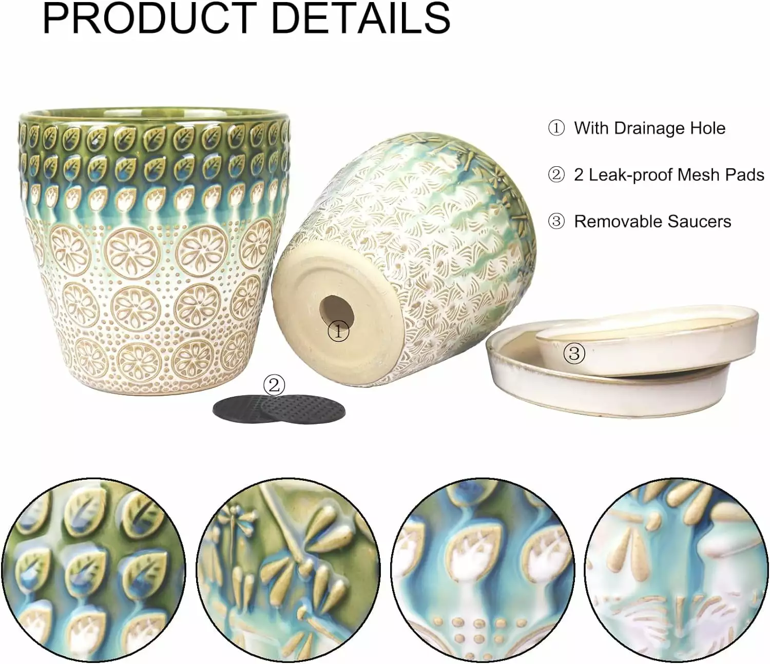 YFFSRJDJ Ceramic Planter for Indoor Plants – Set of 2 YFFSRJDJ ceramic planter with a drainage hole is suitable for planting orchids. herbs. and succulent plants. The drainage hole prevents the flower pot from overwatering. promoting plant health. It is a suitable gift for succulents enthusiasts and gardening lovers. We are committed to providing plant pot for plants and a source of happiness for you. If you have any questions. please contact us and we will be happy to help you. Material: Ceramic Package: with 2 ceramic planters. 2 saucers. and 2 Mesh Pads. plants are not included.
