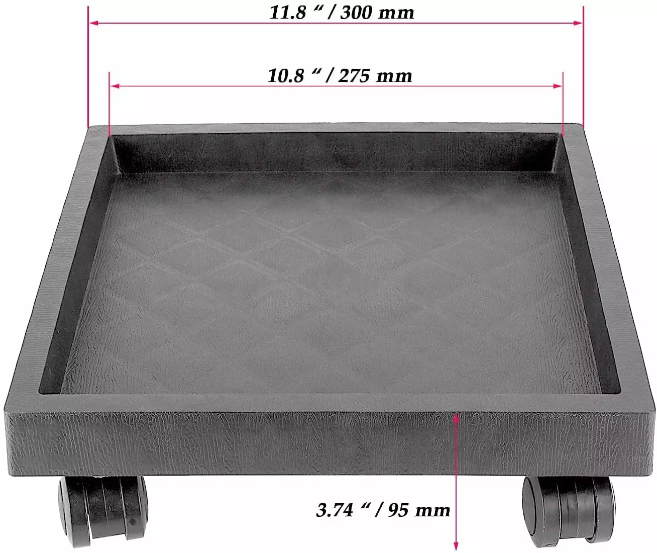 WHAT YOU WILL GET – You can get 2 pieces of wheeled planter saucer tray. each has a outer length and width of 11.4 inches. The inner diameter is 10.8 inches and inner depth is 1 inch. It can load up to 110lbs plant pots.