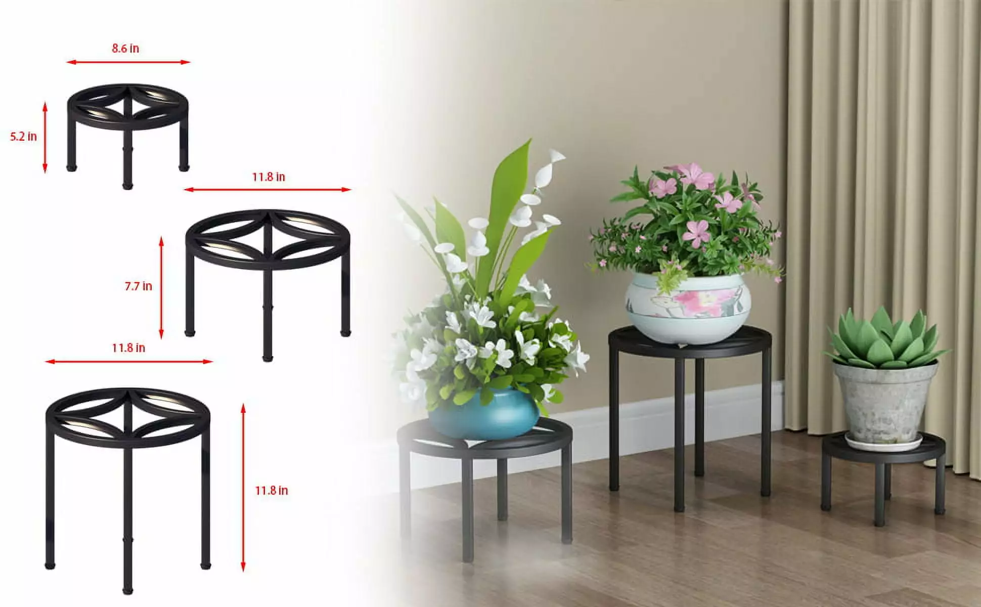 Zhongma Set of 3 Metal Plant Stand for Heavy Potted Plant with Adjustable Leveling Feet. 220 LBS Capacity & Heavy Duty Construction