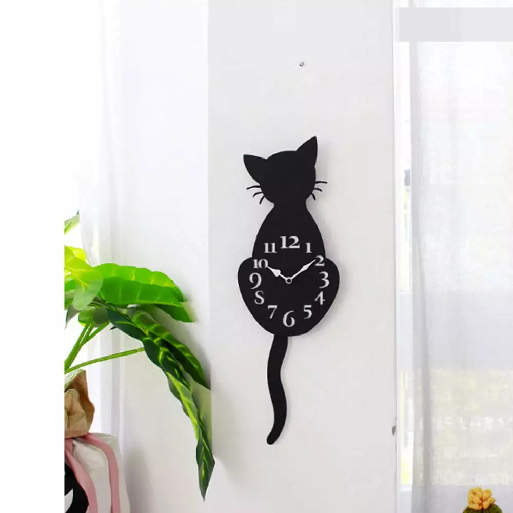 Lemononstore Clock Clock Move Watch Cute Cat Tail Cartoon Decor Wall Way Clock Clocks
