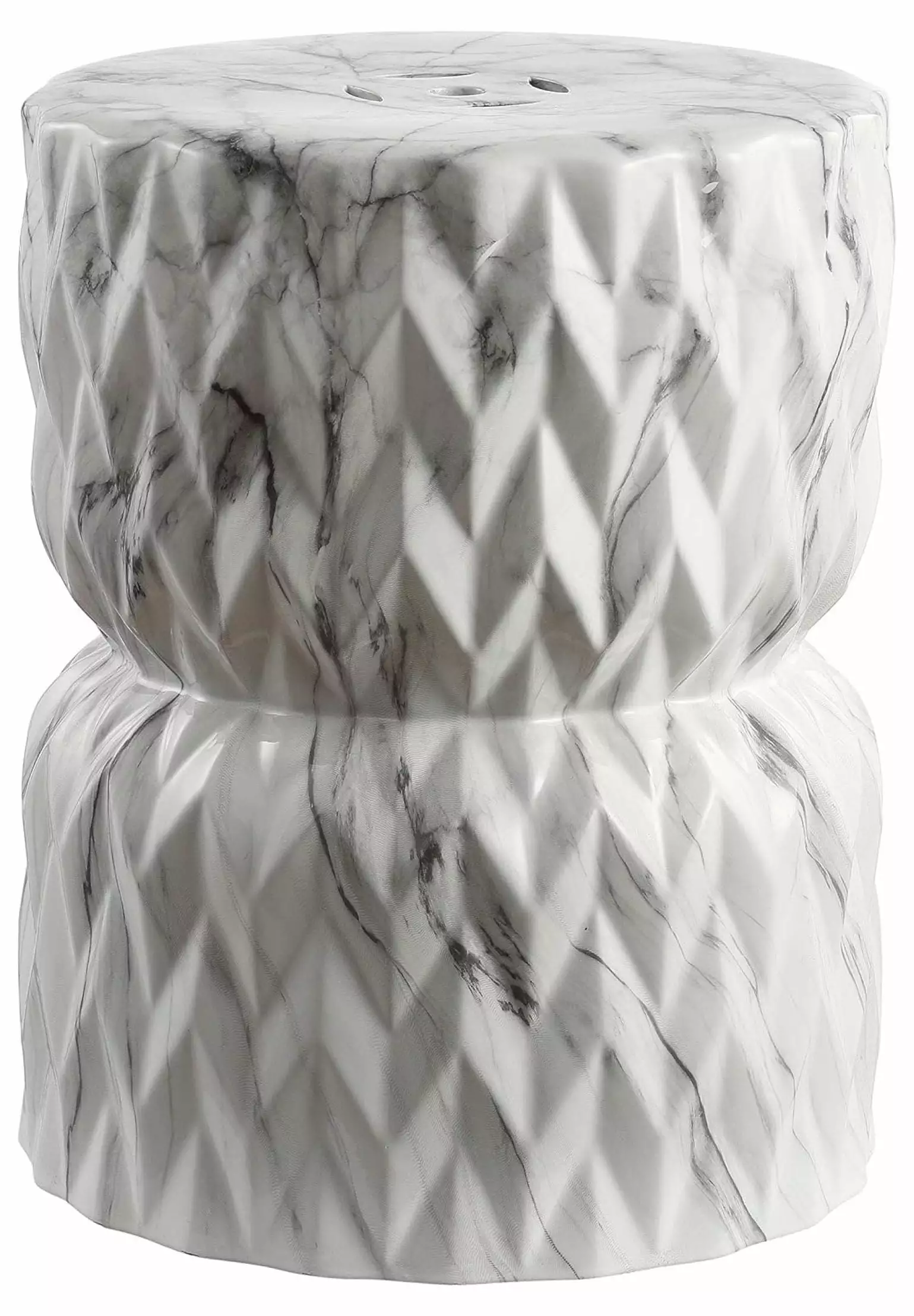 ZJINJIN LBT1021A Drum 17.5 White Marble Finish Ceramic Garden Stool. White Marble Finish for Contemporary. Glam. Midcentury. Modern. Scandinavian. Transitional